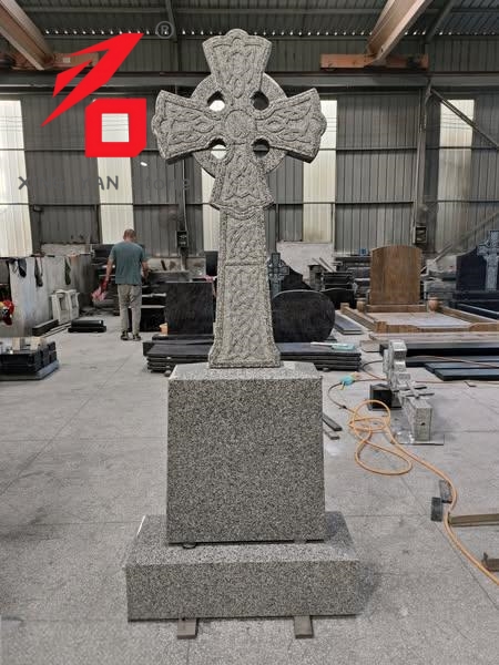 Gurutze formako granito beltzeko hilarri erlijiosoa